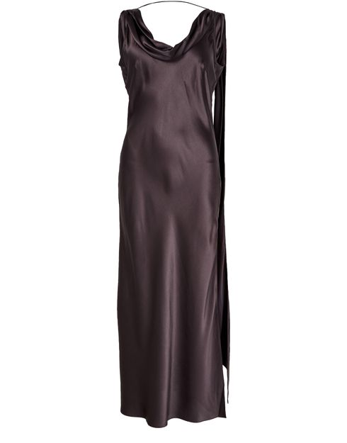 Unveil Acne Studios's satin midi dress, a masterpiece of elegance with a slim fit that accentuates your silhouette. Experience the allure of its draped detail and a backless design, all in a sleeveless cut. Perfect for both formal and casual occasions, this dress redefines modern sophistication.