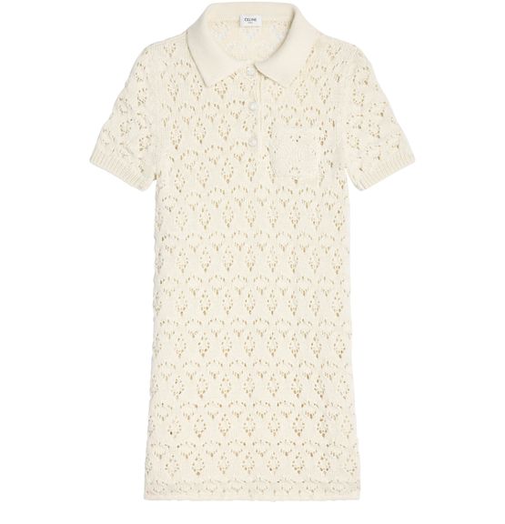 Discover the mini dress in cotton pointelle, polo dress with Triomphe patch by Celine. This dress with classic cut and mini length features an elegant polo collar, a chest patch pocket and refined Triomphe buttons. Adopt a timeless style with this sophisticated piece.