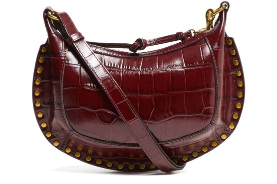 Reveal Isabel Marant's Oskan Moon shoulder bag, a masterpiece in crocodile-embossed leather. This bag features a chic front logo, studded details, and a silver finish. Its adjustable, detachable strap offers versatile styling, while the zipper closure ensures your essentials are secure.
