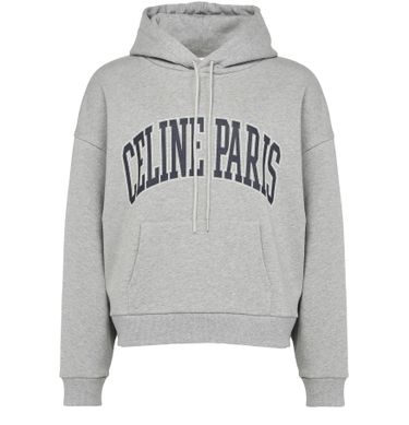 Celine's oversized hoodie embraces a relaxed silhouette with a front logo that captures attention. Crafted from soft cotton fleece, it features a kangaroo pocket for cozy storage. Long-sleeved with cuffed sleeves and an adjustable drawstring neckline, this hoodie is perfect for effortless style and comfort in any casual setting.