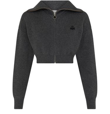 Etoile Isabel Marant's Oxane jacket showcases a stylish cropped silhouette with long-sleeved, cuffed sleeves. A convenient zipper closure enhances functionality, while the front and chest logos add a touch of branding. The appliquéd logo at the back label completes this fashionable piece, perfect for elevating any casual outfit.