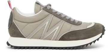 Moncler's Pacey low top sneakers showcase a sleek design with visible stitching that highlights their craftsmanship. The logo on the tongue adds a touch of sophistication, while the closed structure ensures a secure fit. Featuring a logo-printed insole and a round toe, these sneakers effortlessly blend style and comfort.
