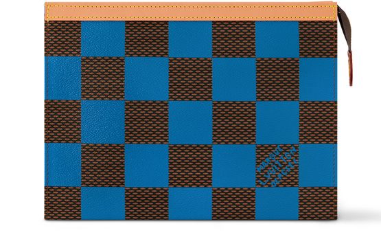With Damier Pop coated canvas, Creative Director Pharrell Williams brings bold primary-color optimism to the Pochette Voyage. Paired with natural leather along the top and on the gussets, this functional pouch can be carried as a clutch or used inside a larger bag. The interior has a flat pocket and six card slots.