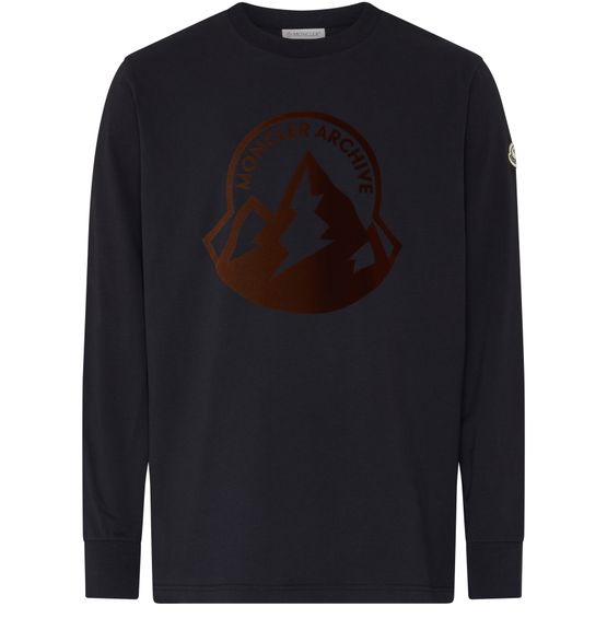 Moncler's Printed long-sleeved t-shirt showcases a stylish crew neck and a relaxed fit, perfect for layering. Its unique design features an appliquéd logo and visible stitching that adds character. This versatile piece effortlessly combines comfort and fashion, making it an essential addition to any wardrobe for casual outings.