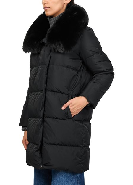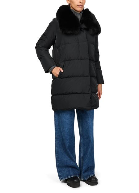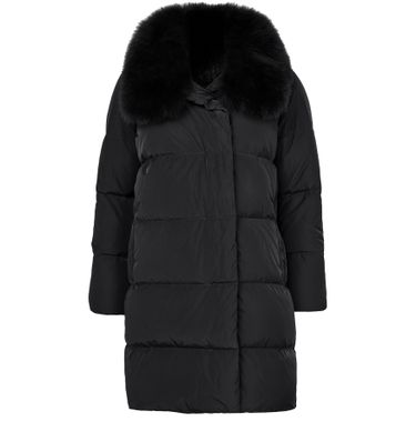 Reveal Yves Salomon's puffer jacket with a fox fur collar. This oversized, long silhouette offers plush comfort with its padded texture. Featuring a concealed closure and practical side pockets, it blends fur details with functionality, making it a versatile choice for any setting.