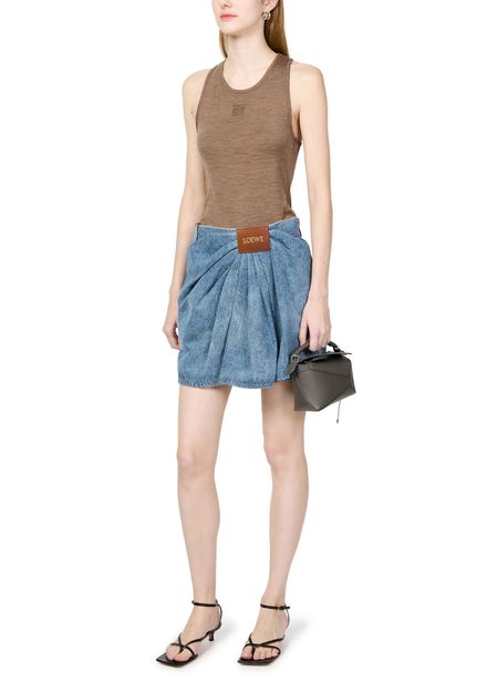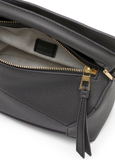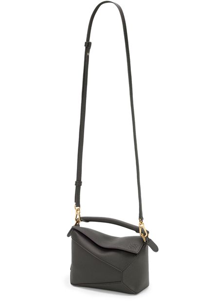 The Loewe Puzzle Edge mini bag is crafted from grained leather, featuring a sleek and compact design. It is equipped with a convenient handle and a detachable strap, allowing it to be worn either in the hand or on the shoulder. A stylish accessory for any occasion.