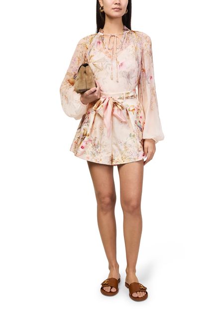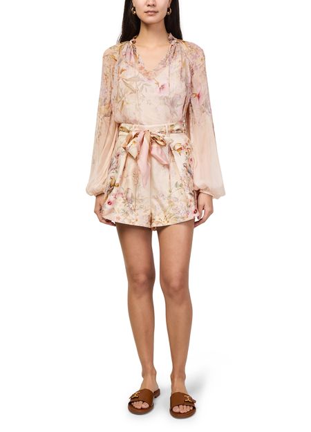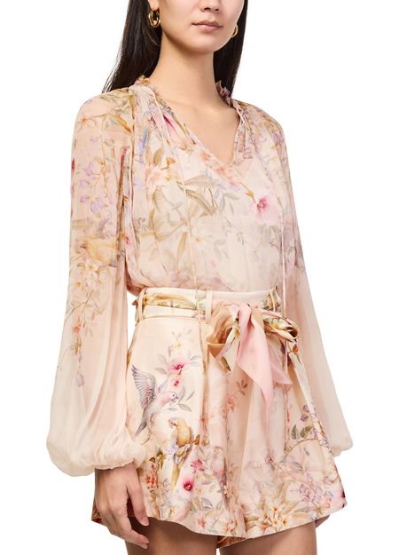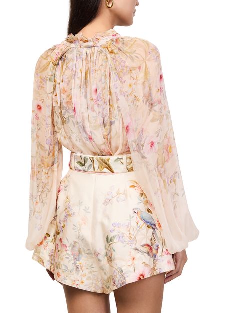 Reveal Zimmermann's rebellion billowing blouse, where a high-neck silhouette meets elegant bell sleeves and a striking floral print. The long-sleeved design offers a graceful flow, making this top a standout piece for both day and evening ensembles.