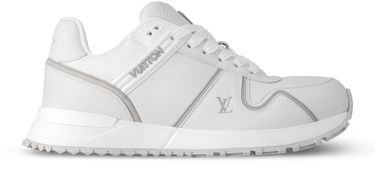 Debuting with the Prefall 2025 collection, the Run Away Maxi sneaker is a fashionably oversized version of the emblematic Run Away. It features an upper in smooth calf leather with contrasting LV Initials and Vuitton signatures. Another key detail is the wedge-shaped outsole, inspired by running shoes, which is made of lightweight rubber.