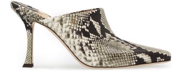 Jimmy Choo's Rya 90 mules are a sophisticated choice for any special occasion. Crafted from luxurious serpent-effect leather, these elegant mules feature a pointed toe and a stiletto heel that adds a touch of glamour to any outfit. The logo insole adds a subtle branded touch to these stunning shoes.