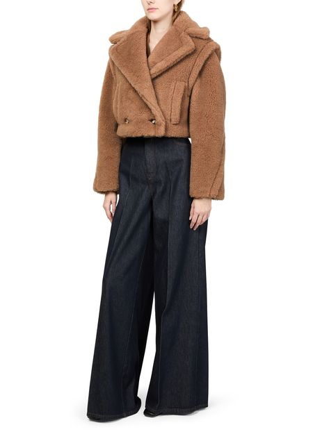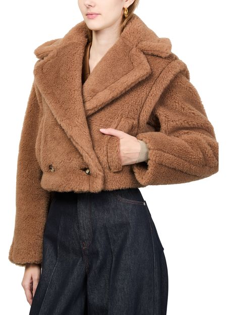 Reveal Max Mara's Santos Teddy jacket, a regular fit piece crafted from warm fabric. This cropped design features a button fastening and patch pockets, enhanced by fur detail. Perfect for casual settings, it combines style and functionality effortlessly.