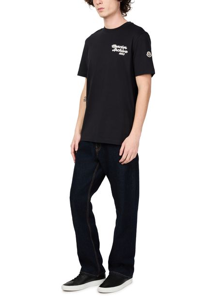 Introducing Moncler's short sleeved t-shirt, a perfect blend of fashion and comfort. Crafted with a classic crew neck and short sleeves, this t-shirt showcases a prominent chest logo and visible stitching, adding a touch of sophistication to your everyday look.