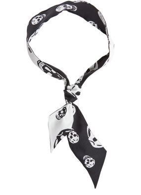 Reveal Alexander McQueen's skull scarf, crafted from fine silk with an all-over print. This statement accessory brings a bold edge to any ensemble, offering a modern twist on classic style. Its lightweight feel and striking design make it a standout addition to your wardrobe.
