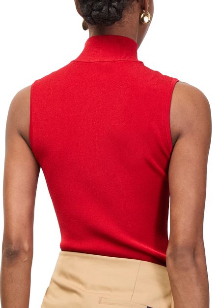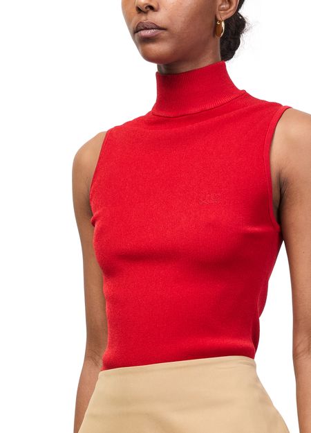 Reveal Loewe's sleeveless top in viscose blend, featuring a refined high-neck and a modern, streamlined silhouette. The smooth fabric and minimalist design make it a versatile piece, perfect for layering or wearing solo to elevate both casual and sophisticated looks.
