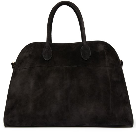 The Row Soft Margaux 15 bag is a stylish and practical accessory for any fashion-conscious individual. It features two handles for easy carrying, and is made from aged suede for a unique and distressed look. The visible stitching adds a touch of detail, while the large interior compartment and zippered pocket provide ample storage space for all your essentials.