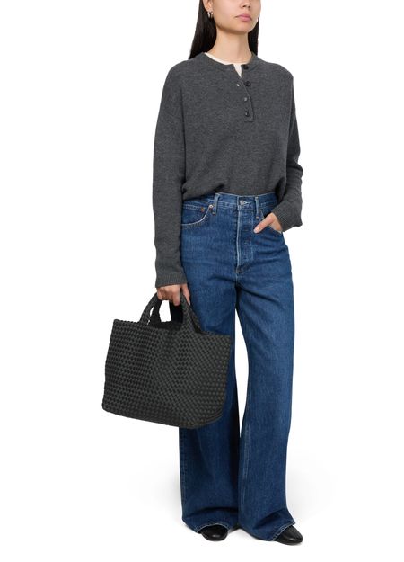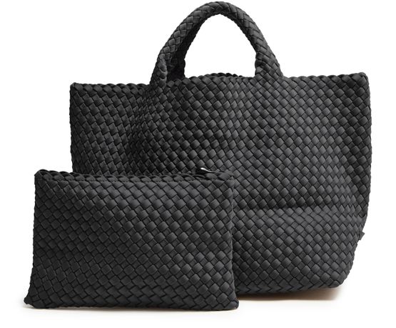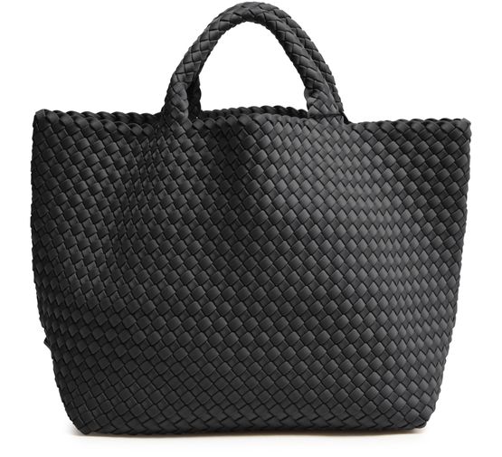 Reveal Naghedi's St Barths medium tote, crafted in open weave for a contemporary look. The double handles offer versatile carrying, while the spacious interior compartment ensures effortless organization. This tote blends modern design with practical elegance, making it a standout accessory for any occasion.