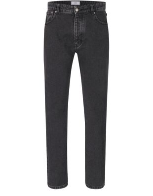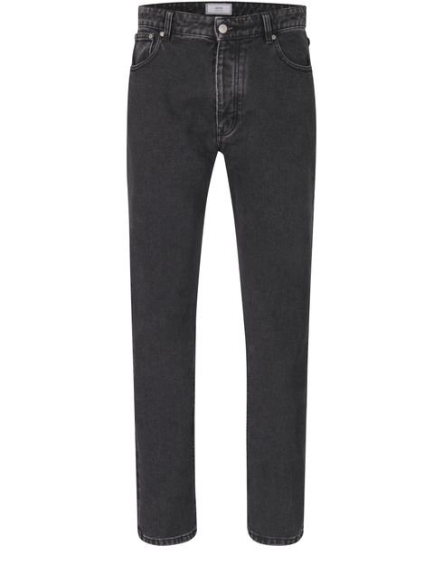 Description : Straight jeans, patch pockets at the front, button and concealed zip fastening.