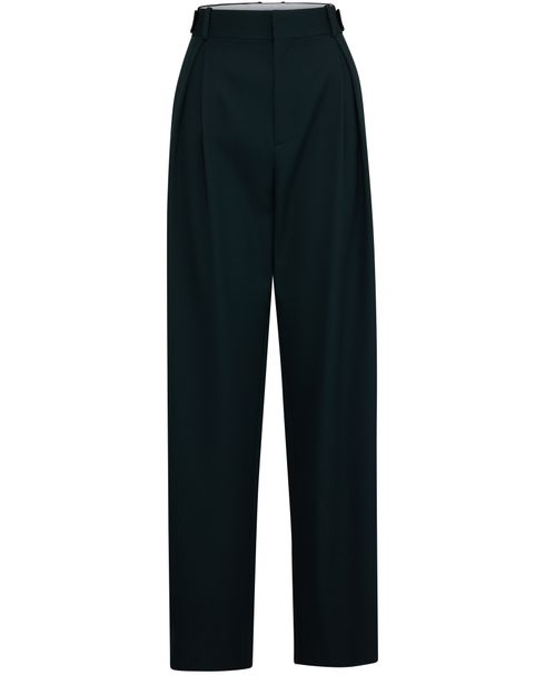 These high-waisted pants from Bottega Veneta feature a straight, wide cut and subtle pleats on the front for a polished look. Crafted from wool, they offer a luxurious feel and timeless appeal. Perfect for both professional and casual settings, these pants are a versatile and sophisticated wardrobe staple.