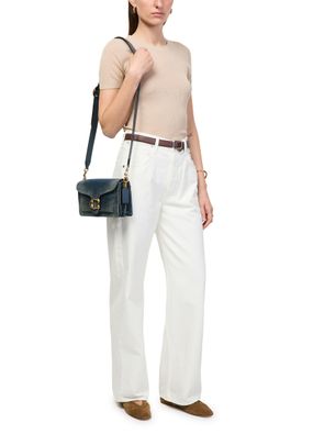 Reveal Coach's Tabby 26 shoulder bag, crafted in faded denim with a magnetic 'C' buckle for a signature touch. The wide, adjustable strap and single handle offer versatile styling, while gold-finish hardware and visible stitching highlight refined craftsmanship. Multiple pockets and secure closures ensure both elegance and practicality.