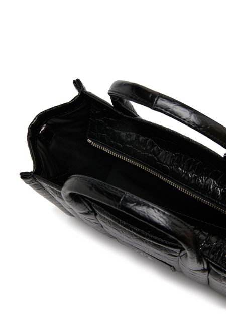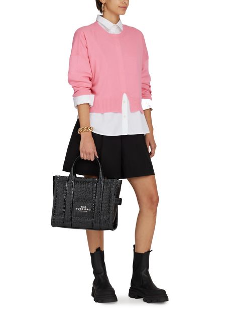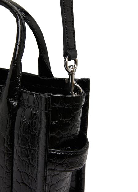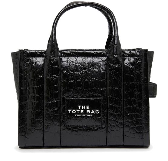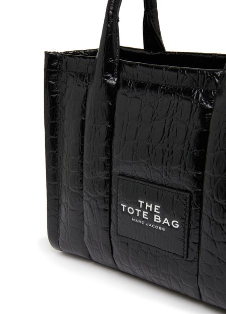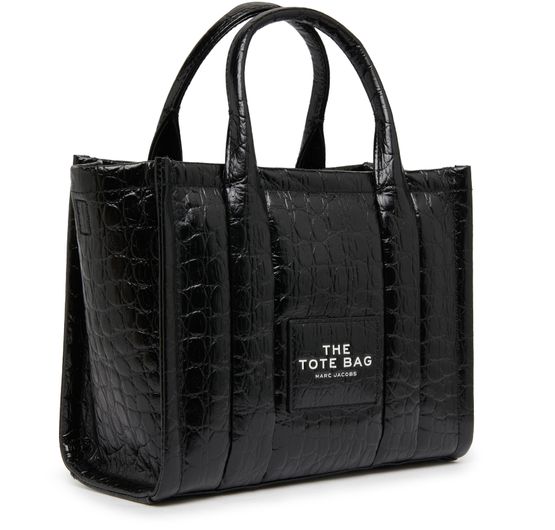 The Marc Jacobs Medium Tote Bag is a versatile and stylish accessory that combines functionality with elegance. Crafted from crocodile-embossed leather, it exudes luxury. It features a slender adjustable and detachable shoulder strap, along with two handles for multiple carrying options. The front logo adds a touch of sophistication. The bag also includes a zippered interior pocket for secure storage. With its zipper closure, it...