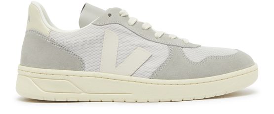 Veja's V-10 low top sneakers boast a classic design with a round toe and closed silhouette. The logo on the side, tongue, and back adds a signature touch, while visible stitching enhances durability. Perfect for casual outings, these sneakers seamlessly blend style and sustainability for the modern individual.