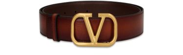 V Logo belt H.35 features aged gold hardware, highlighting its luxurious appeal. It showcases the designer's iconic buckle, creating a fashionable statement piece. The Vlogo Signature element adds a touch of sophistication, while the belt's adjustable length ensures a perfect fit.