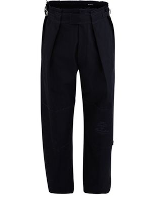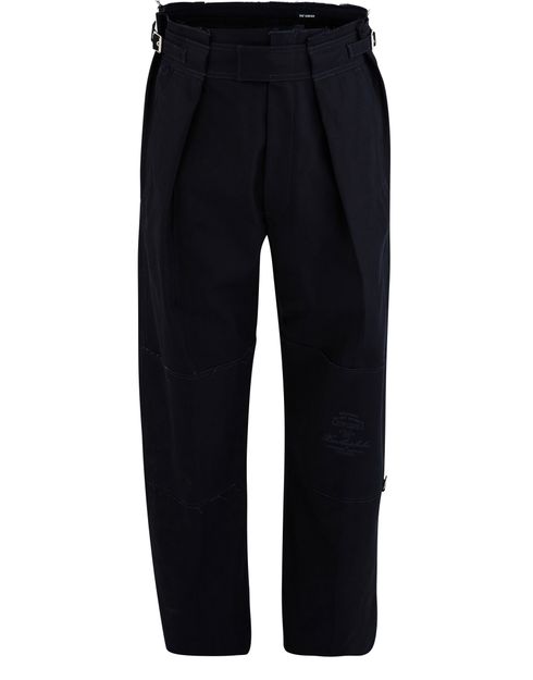 These wide patched trousers from RAF SIMONS are extravagant and energetic. With highly original pleating, they highlight the waist attractively.
