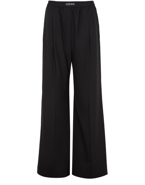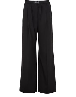 Loewe's wool pants offer a relaxed, loose fit with an elasticated waist for ultimate comfort. Featuring visible stitching and a front logo, these ankle-length casual pants include side pockets and welt pockets for practicality. The embroidered logo on the back pocket adds a touch of sophistication to this low-waisted design.
