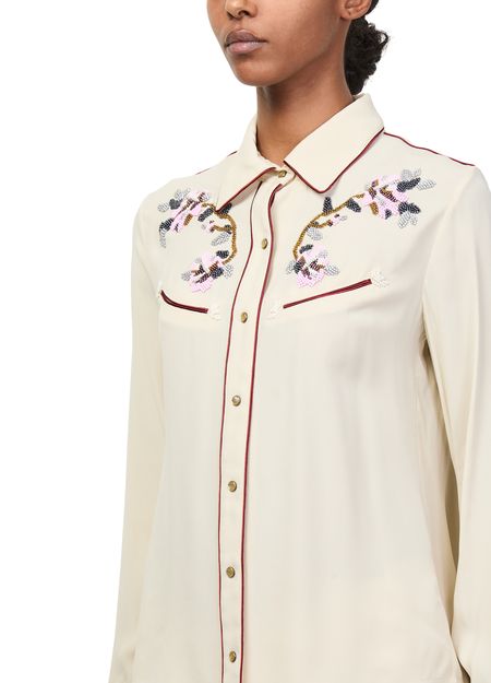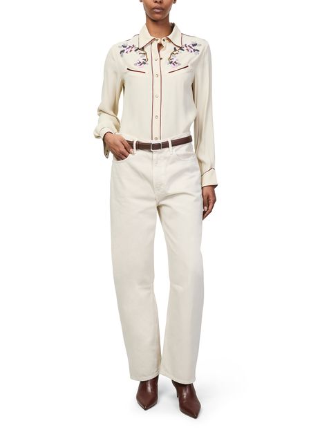 Reveal Isabel Marant's Yzea shirt, a refined top featuring long sleeves and delicate floral embroidery. The button fastening adds a polished touch, while the elegant silhouette ensures effortless pairing with both tailored trousers and casual denim for versatile, modern styling.