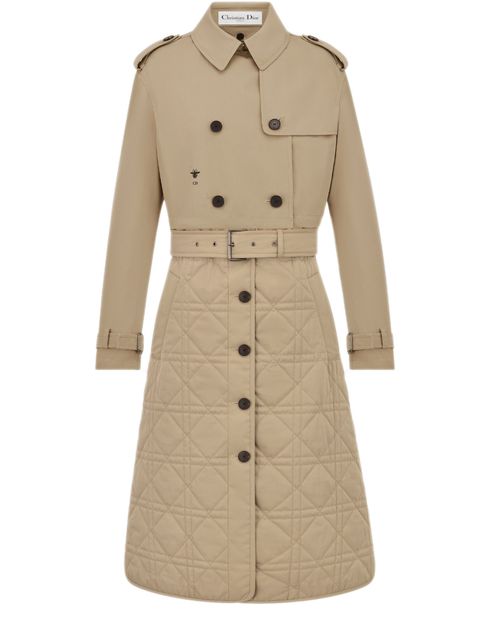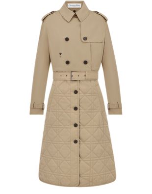 Description : Hallmark embroidered bee, double-breasted front with four horn buttons, tonal belt with metal buckle, adjustable button tabs at the cuffs and shoulders, unlined.