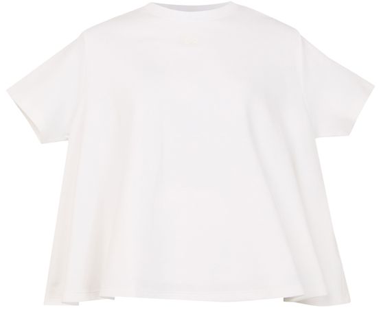 • Description : short-sleeved, crew neck, appliquéd logo, regular length, blouses, visible stitching, flared sleeve.
