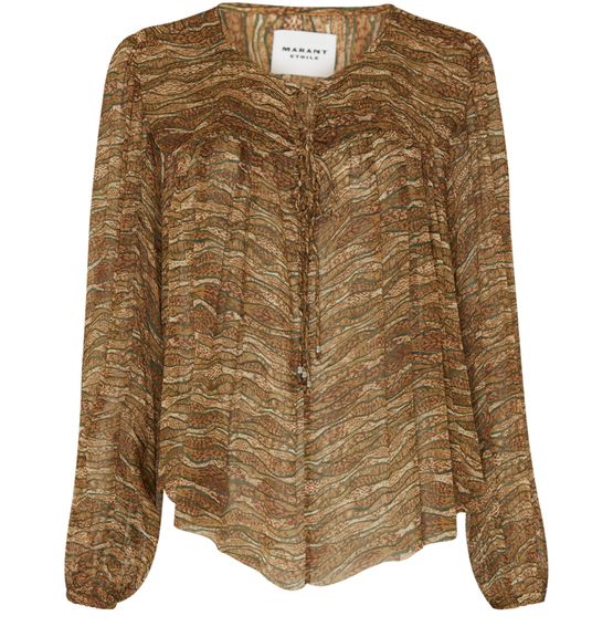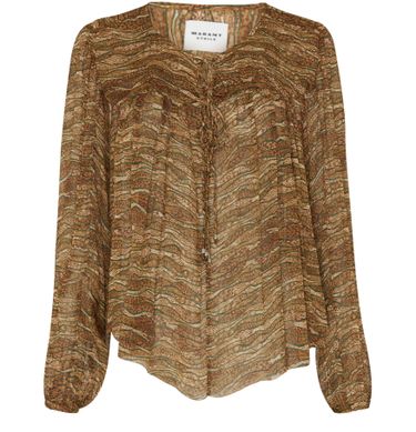Etoile Isabel Marant's Advika long-sleeved top showcases an all-over print with a striking appliquéd logo. Its regular length and round neck offer a flattering silhouette, while the visible stitching adds a unique touch. The long-sleeved design and stylish cuffs make it a versatile choice for any occasion.