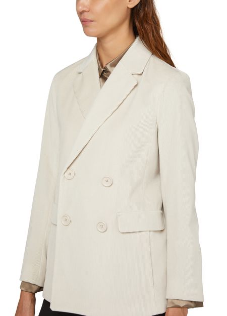 S Max Mara's Agente double breasted corduroy jacket is a classic and sophisticated addition to any wardrobe. It features a tailored collar, side pockets, and flap pockets for a stylish yet practical look. The crossover fastening and buttons on the front add a touch of elegance to this timeless piece.