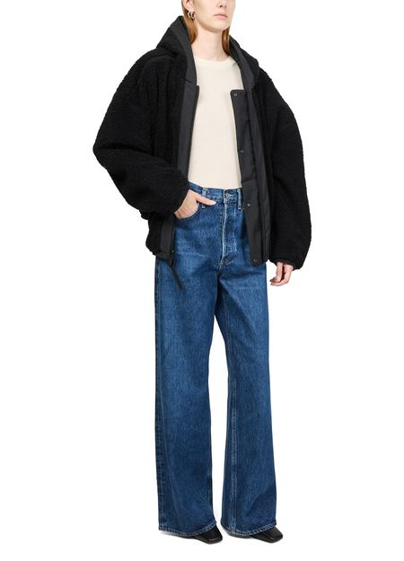 Embrace Canada Goose's Alberni reversible fleece aviator jacket, a perfect blend of style and functionality. This oversized, short jacket features a concealed closure, long sleeves, and a cozy hood. Side pockets and an embroidered logo add a touch of sophistication, making it versatile for any casual occasion.