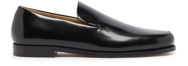 Khaite's Alessio loafers showcase a sleek pull-on design with visible stitching that highlights their craftsmanship. The low block heel adds a subtle lift, while the contrasting sole enhances their modern appeal. With a round toe and closed silhouette, these loafers effortlessly blend comfort and sophistication for any occasion.