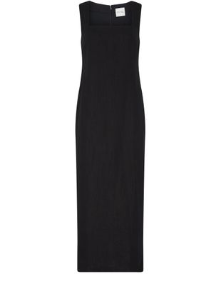 Unveil Posse's Alice midi dress, a sleek piece perfect for cocktail & evening events. With its rectangular neckline and sleeveless design, this knitted dress features a concealed back zipper closure and visible stitching. The sophisticated back slit adds a touch of elegance to every step.