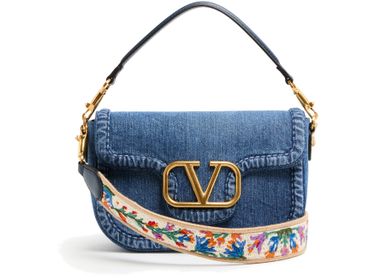 Description : magnetic closure, flap closure, single compartment, gold finish, double handles, metallic logo on the front, visible topstitching, detachable strap, hand carried, worn crossbody.