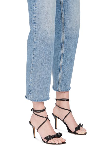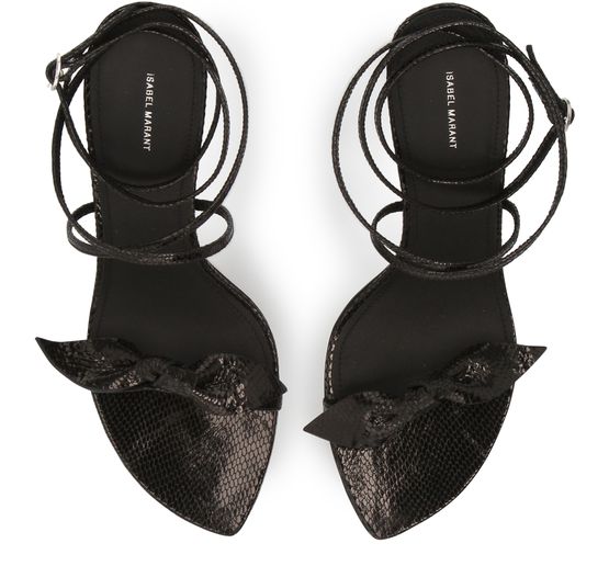 • Description : Open round toe, sleek shape, bow on the front, buckled ankle strap, leather insole.