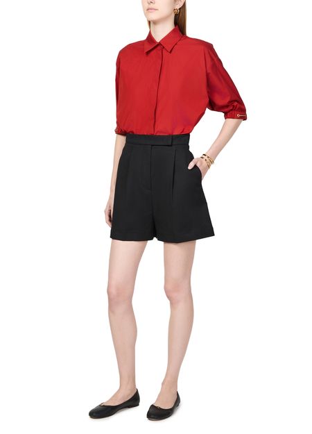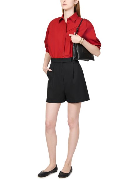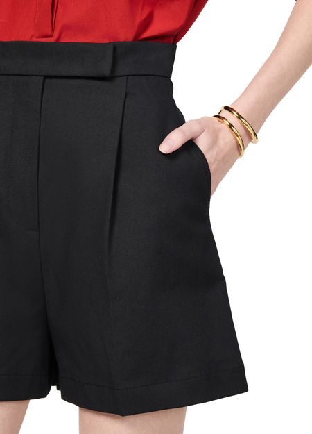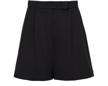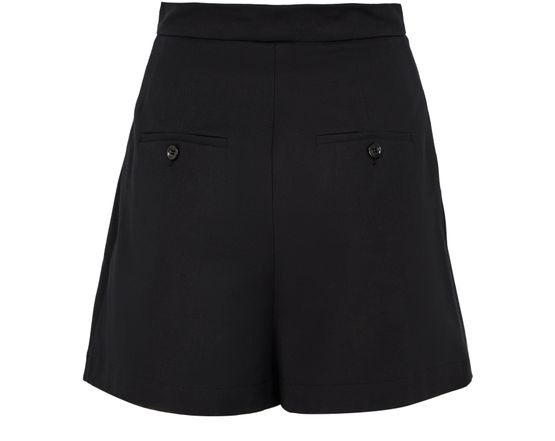 • Description : back darts, concealed zipper closure, visible stitching, back pocket, welt pockets, side pockets, high-waisted fit, short length, pleats on the front.