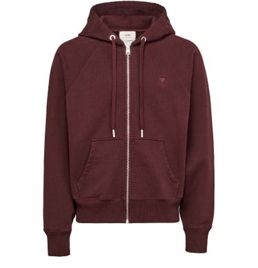 Ami's Ami's de Cœur zipped sweatshirt combines comfort and style effortlessly. With a zipper closure and an adjustable drawstring neckline, it offers a snug fit. The long-sleeved design features cuffed sleeves and a kangaroo pocket, while the embroidered chest logo and visible stitching add a touch of sophistication to your casual look.