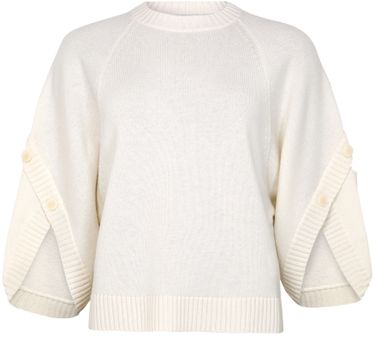 Unveil Max Mara's Ampex round neck sweater with its ribbed crop design. Featuring a crew neck and three-quarter-length bat sleeves, this knitwear piece is adorned with embellished buttons and a logo at the back, offering a stylish update to your wardrobe essentials.