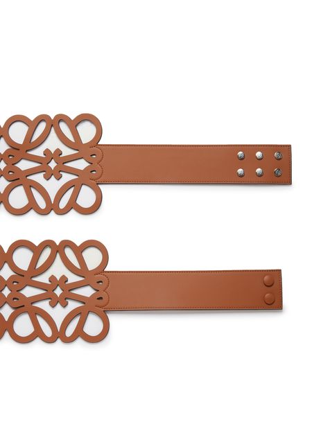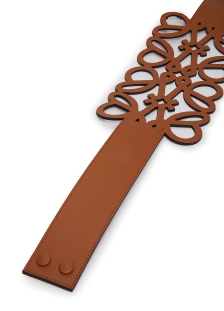The sophisticated esthetic of the Anagram calfskin leather cut-out belt makes it the ideal accessory to perfect an outfit. The waist is highlighted by a large pattern that's a signature of Loewe's creations.