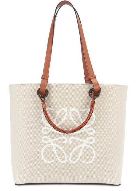 This tote bag's understated subtlety is reinforced by the iconic Anagram motif and one handle covered in plaited leather. This discreet and elegant piece comes from the House of Loewe.