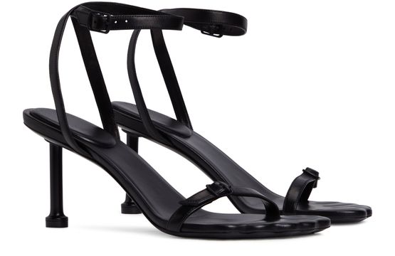 • Description : Graphic cut-outs, open round toe, unique heel, buckled ankle strap, logo insole.