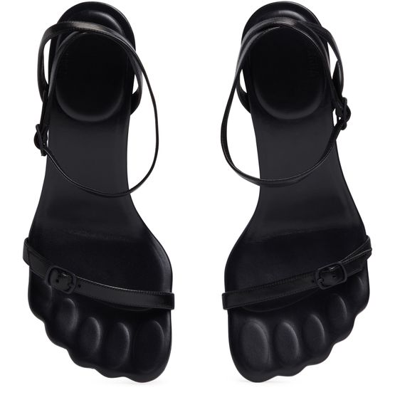 Balenciaga's Sandales Anatomic feature graphic cut-outs, an open round toe, a unique heel, a buckled ankle strap, and a logo insole.
