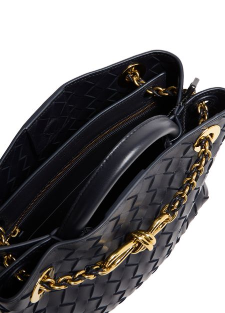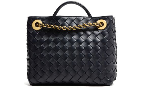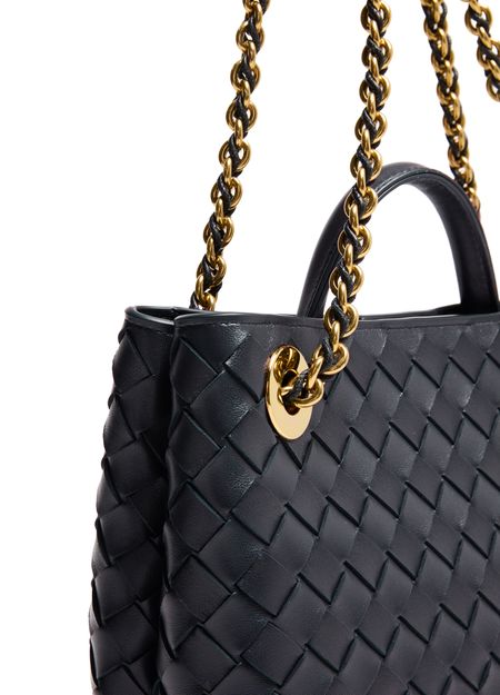 Bottega Veneta's Andiamo small bag is a stylish shopper tote, hand carried with a thin strap for effortless elegance. Its gold finish adds a touch of luxury, while the zippered interior pocket keeps essentials secure. Perfect for day-to-night transitions, this bag embodies sophistication and practicality in every detail.