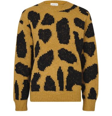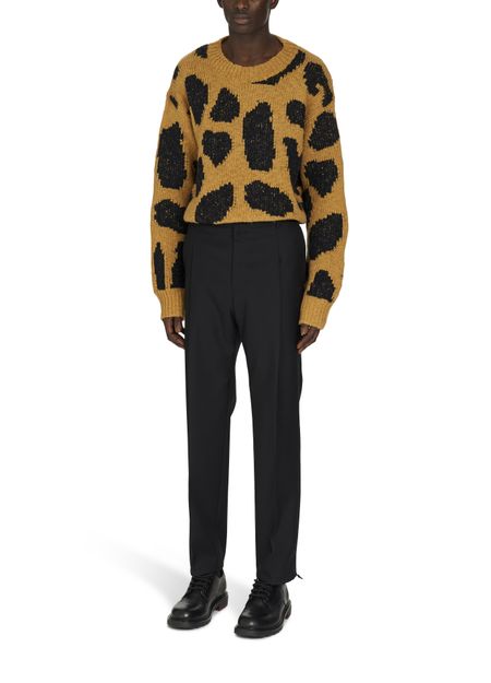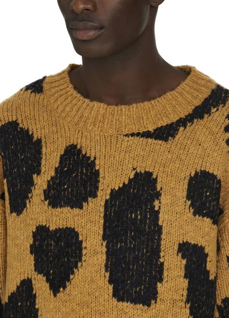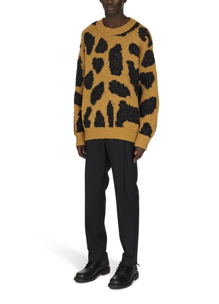 Comfort is the name of the game with this round-necked intarsia sweater with a generous cut and a panther motif, a design from Dries Van Noten.