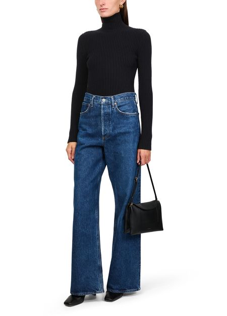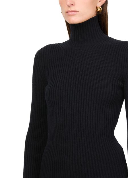 • Description : Ribbed, rollneck / turtleneck, long-sleeved, back zipper closure.