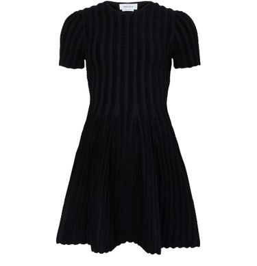 Reveal Alexander McQueen's asymmetric mini dress, crafted from ribbed fabric for a refined texture. The round neck and short sleeves create a balanced silhouette, while scalloped edges and an A-line cut add a modern twist. Perfect for elevating your look at any stylish gathering.