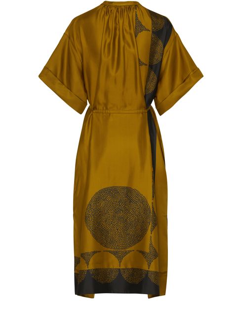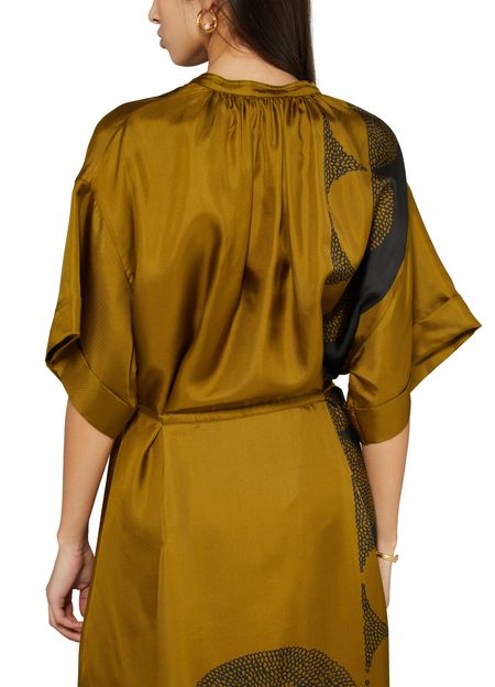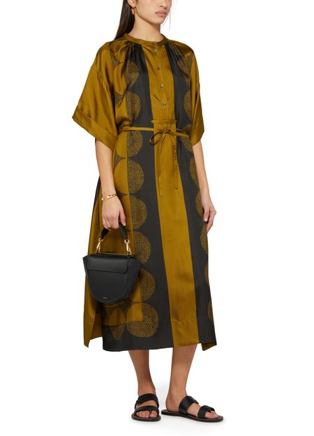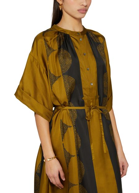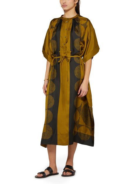 : Long-sleeved silk twill maxi dress with "Pochoir" pattern