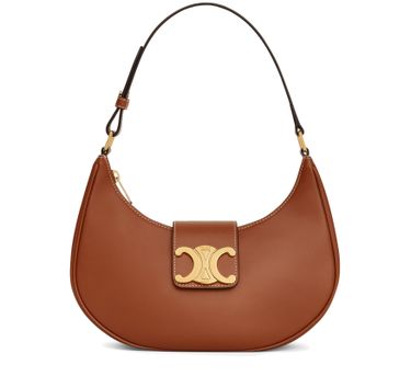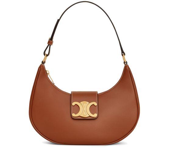Celine's Ava Triomphe bag in smooth calfskin is a stunning fusion of elegance and practicality. With visible topstitching and a chic flap closure, it exudes sophistication. The wide strap allows for comfortable wear on the shoulder, while the single handle offers versatility. A gold finish adds a luxurious touch, making it perfect for any occasion.